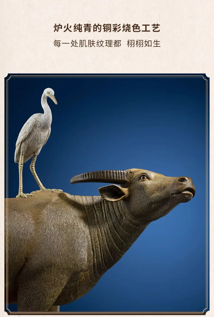 Surface treatment: Light satin polish on the bovine body to maintain natural copper depth, finished with micro-refinement passes for uniform light response.