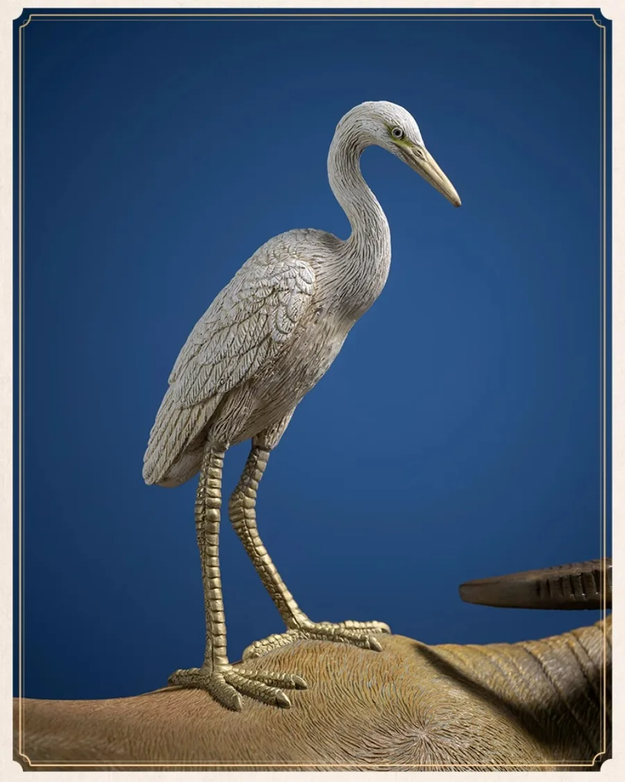 Assembly: The copper bird is individually formed and fixed through recessed pin-anchoring into the bovine back structure, reinforced internally without visible hardware.
